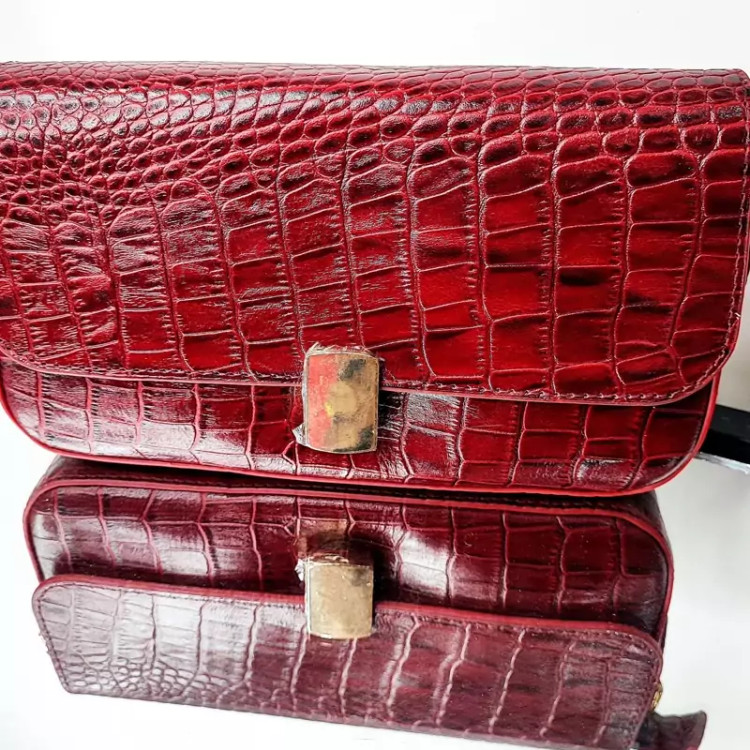 کیف چرم دست دوز زنانه با آویز دوشی دکمه دار طرح کروکودیلی دارای دو جیب در داخل کیف بسیار کاربردی و شیک کیفیت بالا و بادوام بسیار سبک رنگبندی مطابق تصویر ابعاد تقریبی 15×20