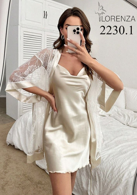 لباس خواب دو تیکه پیرهن و ربدوشامبر