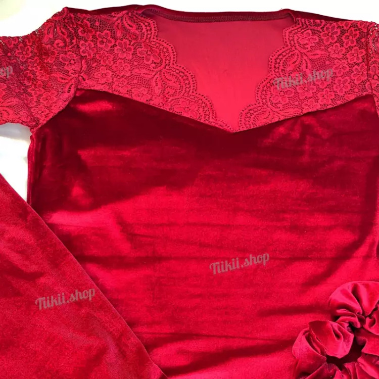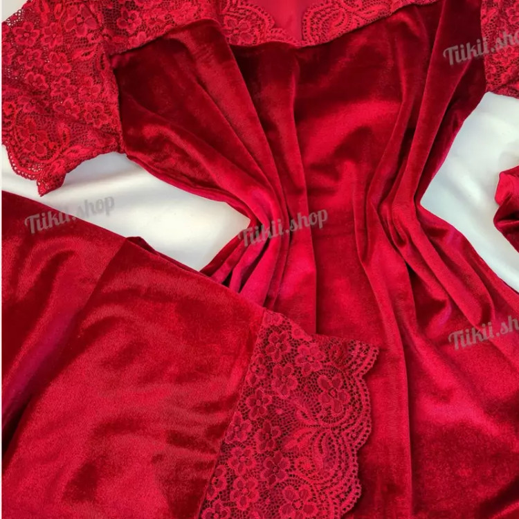 بلوز شلوار راحتی مخمل زنانه دانتل دار