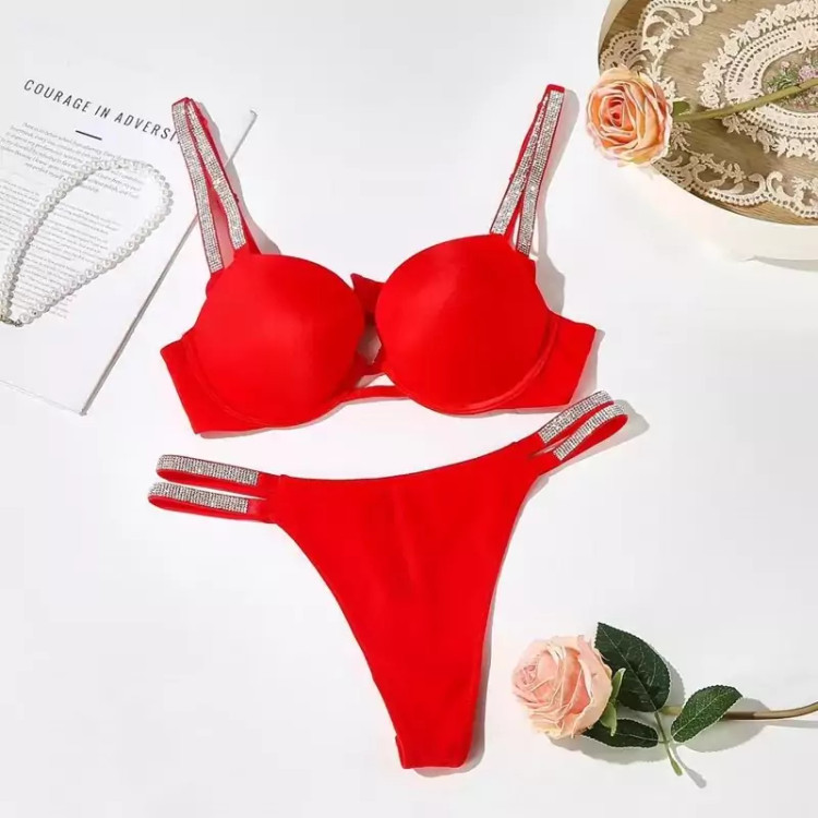 ویکتوریا سکرت اصلی درجه یک هولوگرام دار بسته بندی خارجی بند نگین دار شورت بکلس با بند نگین دار کم اسفنج تنخوری فوق العاده
